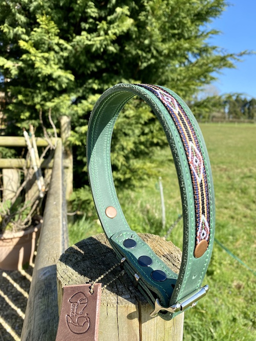 This Collar has been made by me in my rural Dorset workshop where I work with many variations of leather to make bags, accessories and dog collars and many bespoke creations.